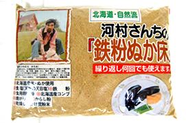 他社ではマネできない、北海道の著名ナチュラリスト、河村道夫さんのこだわりのぬか床です。水を1リットル入れるだけで簡単に野菜を漬けられます。昔の古釘の応用で鉄粉を入れているので、なすの漬け上がりがとてもきれいです。